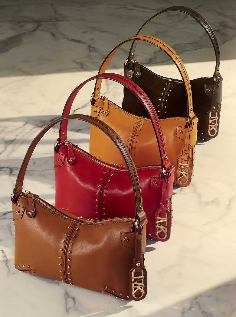 Introducing the re-edition of an iconic heritage handbag: the Astor. First launched in 2004, the Astor was designed by Michael Kors as an homage to Astor Place in New York City. The bag’s clean lines and luxe leather craftsmanship speak to uptown polish while the distinctive stud hardware adds a downtown, tough-chic edge. This shoulder bag style features a sleek, shapely silhouette that makes it the perfect companion for day-to-dark dressing.
