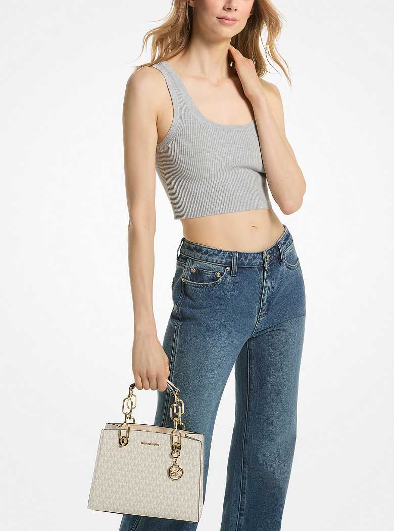 Our Signature Logo-print canvas Cynthia satchel is equal parts chic and pragmatic. Chain-trimmed top handles and touches of polished hardware add to its feminine charm, while a petite, compartmented interior keeps your necessities safe and organized. Wear it crossbody on days that call for an easier attitude.