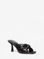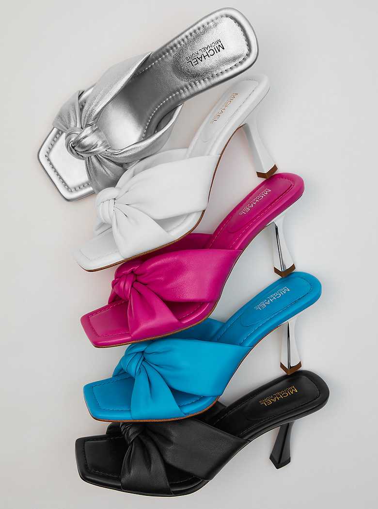 Add a dose of chic to your look with the Elena sandal. This feminine pair is crafted from luxe, pillowy leather with a knotted frontal detail, and finished with a contrasting lacquered heel for added shine.