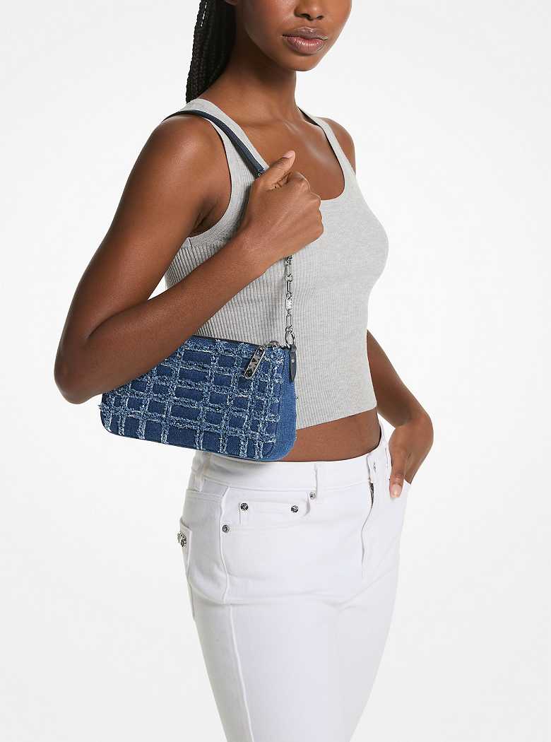 Michaelkors Empire Medium Frayed Denim Chain-Link Azuis | SN-MK27010
