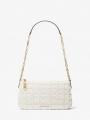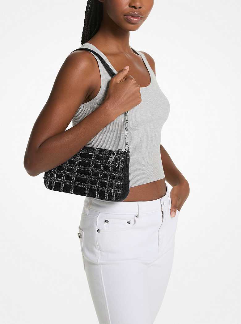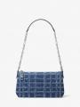 Michaelkors Empire Medium Frayed Denim Chain-Link Pretas | SN-MK27009