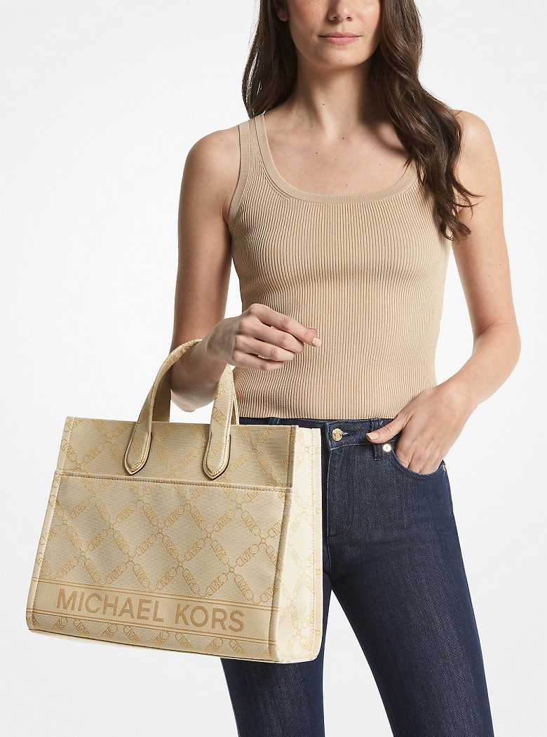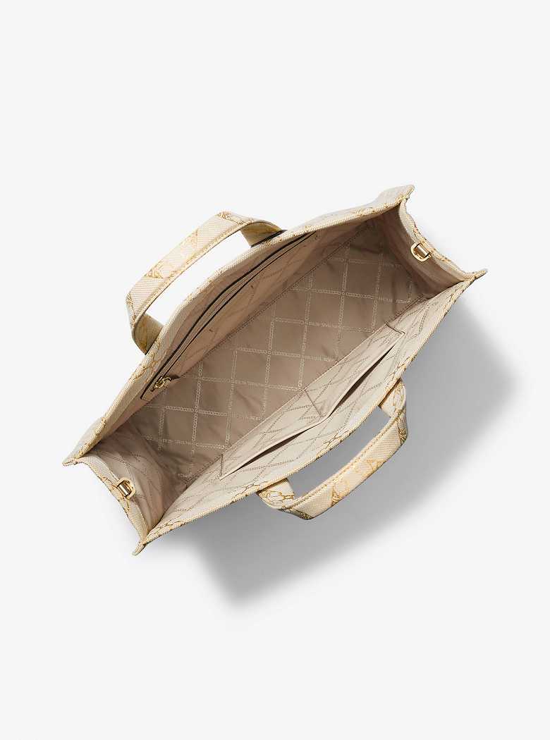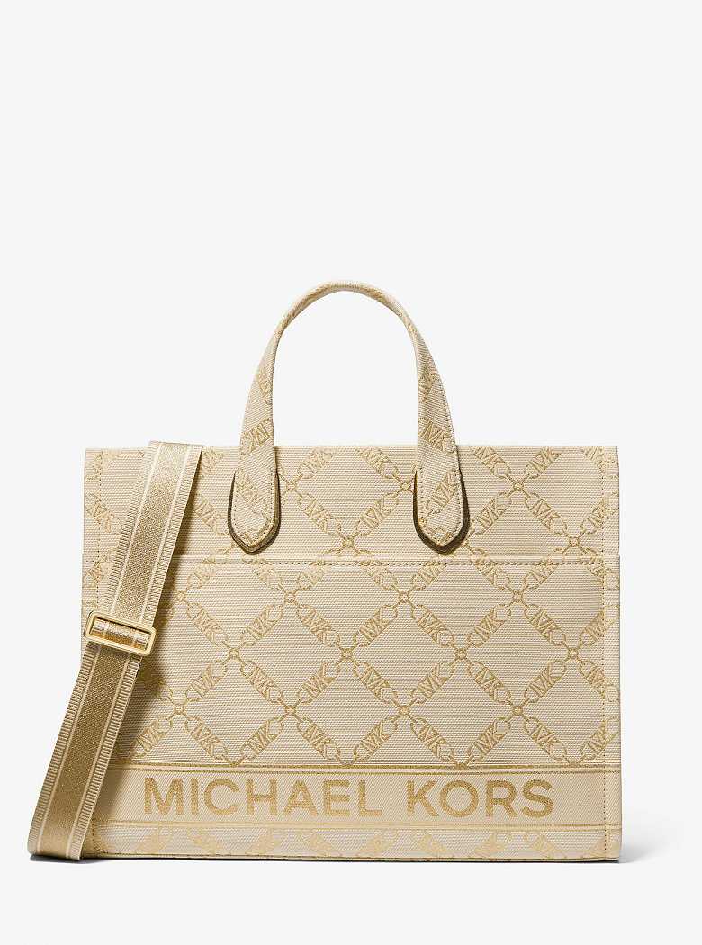 Michaelkors Gigi Large Empire Logo Jacquard Douradas Bege | SN-MK26800