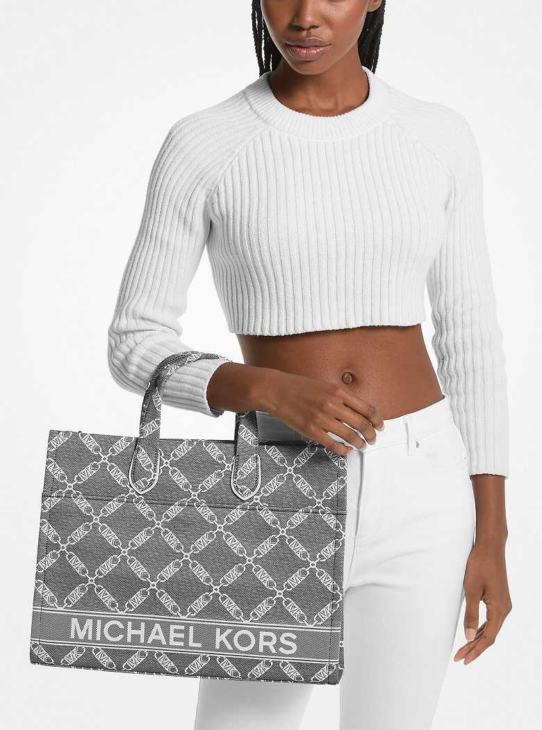 Michaelkors Gigi Large Empire Logo Jacquard Pretas Branco | SN-MK26803