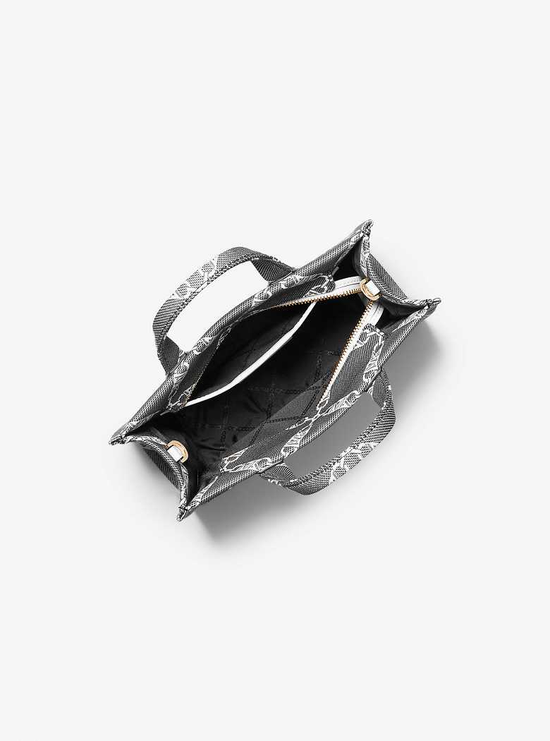 Michaelkors Gigi Small Empire Logo Jacquard Pretas Branco | SN-MK27296
