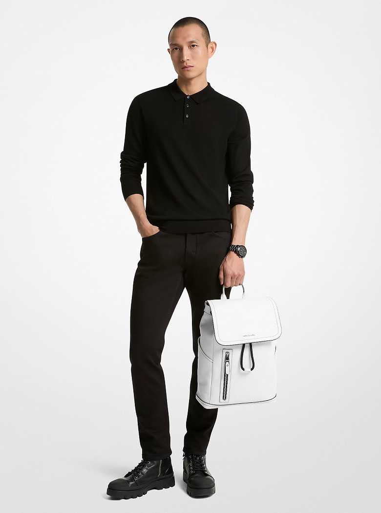 The Hudson backpack is one of our most versatile styles. Crafted from pebbled leather, it boasts a spacious interior with plenty of room for your laptop and numerous exterior pockets for easy access to your belongings. Featuring adjustable shoulder straps and a top handle, this pragmatic essential is designed with a secure snap-fastened closure for a worry-free commute.