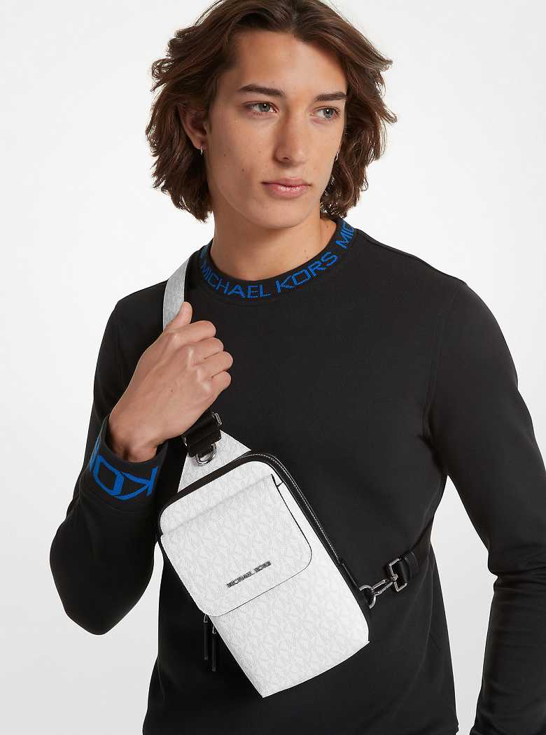 For the stylish man on the go: our Hudson sling pack is made from Signature Logo-print canvas and features an exterior pocket to keep your phone handy as well as a main compartment to keep belongings secure. Wear it crossbody on getaways or as part of your daily commute.