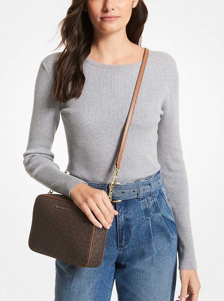 Designed in a clean-lined silhouette from Signature-print canvas, the Jet Set crossbody bag is an instant classic. Polished hardware speaks to a luxe sensibility, while a spacious interior offers easy organization for your essentials. Wear it to add a novelty twist to any ensemble.