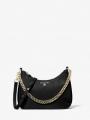 Our Jet Set crossbody bag combines elegance and ease. Crafted from durable nylon-gabardine and finished with high-shine hardware, it includes a sizable interior and detachable chain-link shoulder strap for styling versatility. We think it will instantly add a tough-luxe finish to any look.