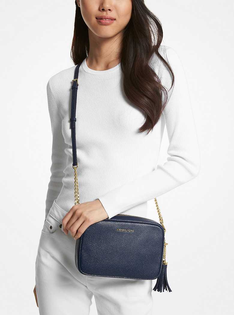 :: Michaelkors Jet Set Medium Pebbled Leather Azul Marinho | SN-MK27158