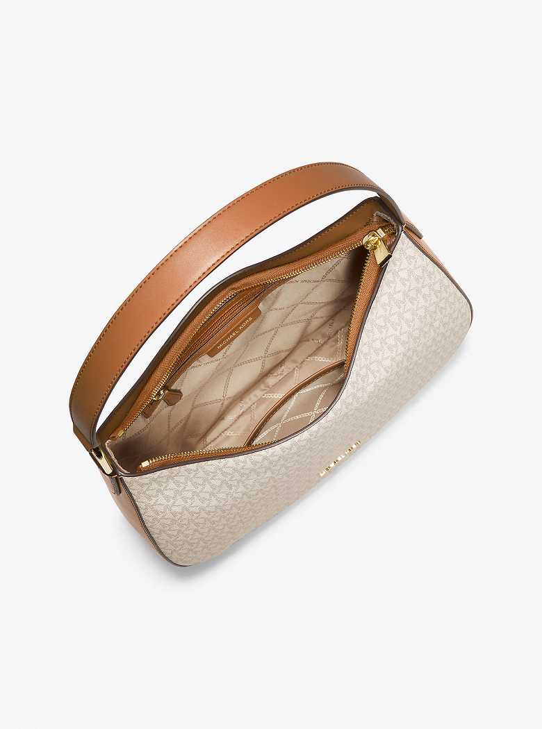 A sculptural, hobo-inspired silhouette and thick shoulder strap make the Kensington handbag a reliable closet staple. It’s covered in our timeless Signature print with smooth sides, and features a strap accented with our Empire Logo. Boasting a sizeable interior, it’s the perfect 24/7 carryall.