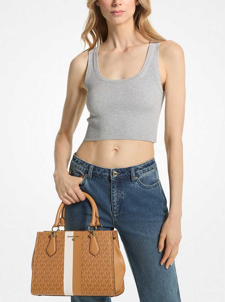 Michaelkors Marilyn Medium Logo Stripe Marrom | SN-MK27325