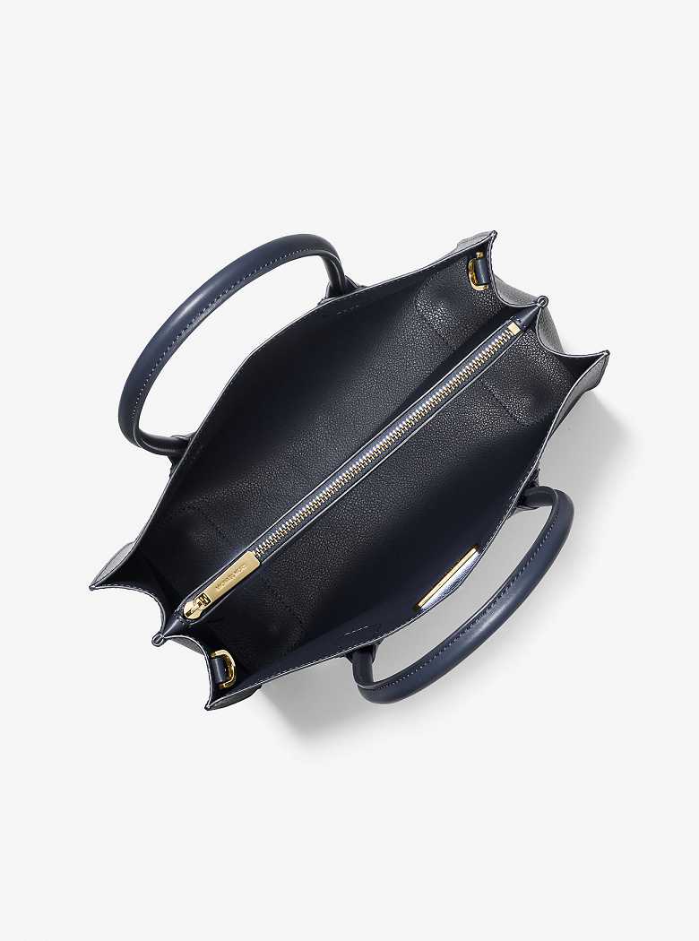 Michaelkors Mercer Large Pebbled Leather Accordion Azul Marinho | SN-MK26791