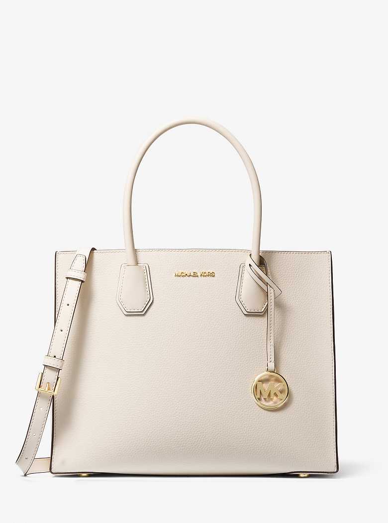 :: Michaelkors Mercer Large Pebbled Leather Accordion Creme | SN-MK26793