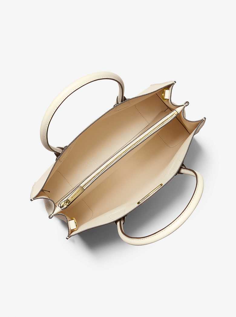 Michaelkors Mercer Large Pebbled Leather Accordion Creme | SN-MK27384