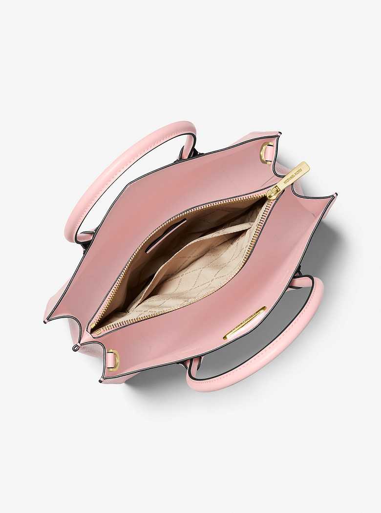 Michaelkors Mercer Large Pebbled Leather Accordion Rosa | SN-MK26794