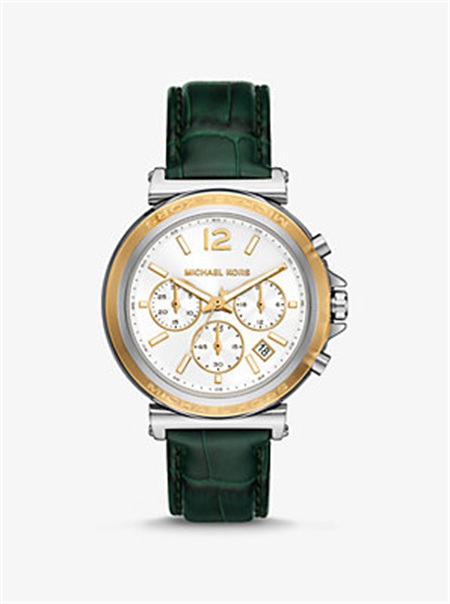 :: Michaelkors Oversized Maren Silver-Tone and Crocodile Embossed Leather Watch Verdes | SN-MK28302