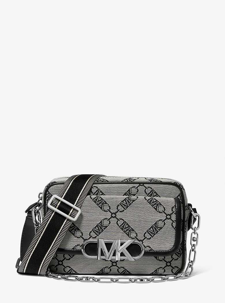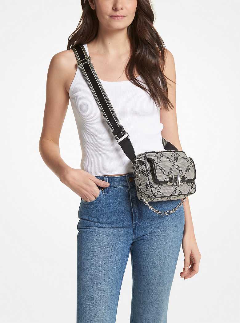 Michaelkors Parker Medium Empire Logo Jacquard Bege Pretas | SN-MK27146