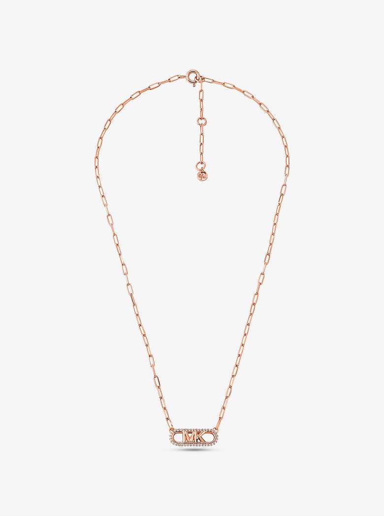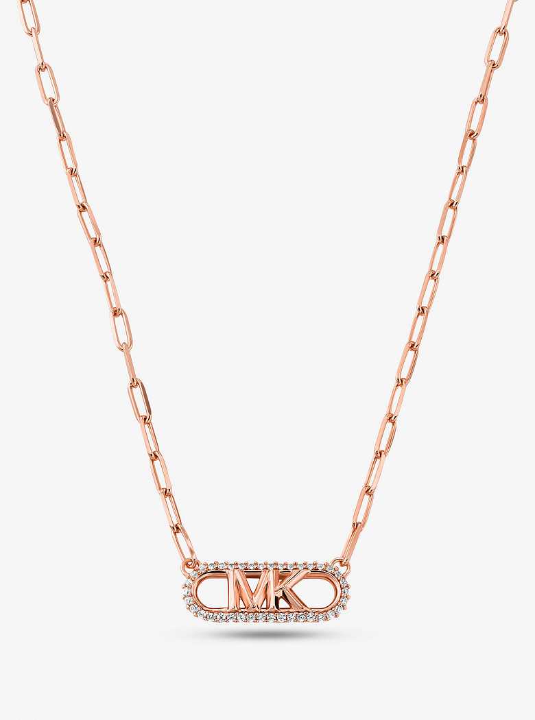 :: Michaelkors Precious Metal-Plated Sterling Silver Empire Logo Chain Link Rosa Douradas | SN-MK27794