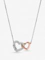 Two hearts interlock on this charming pendant necklace, one pavé-encrusted and the other plated in a precious metal. The perfect gift for a partner, best friend, mother—or yourself—it sends a loving message.