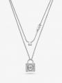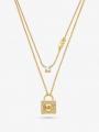 :: Michaelkors Precious Metal-Plated Sterling Silver Pavé Lock Layered Prateadas | SN-MK27804