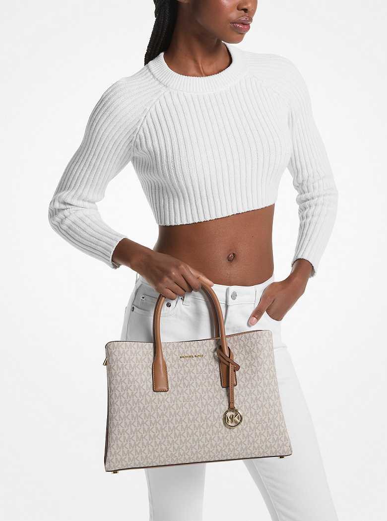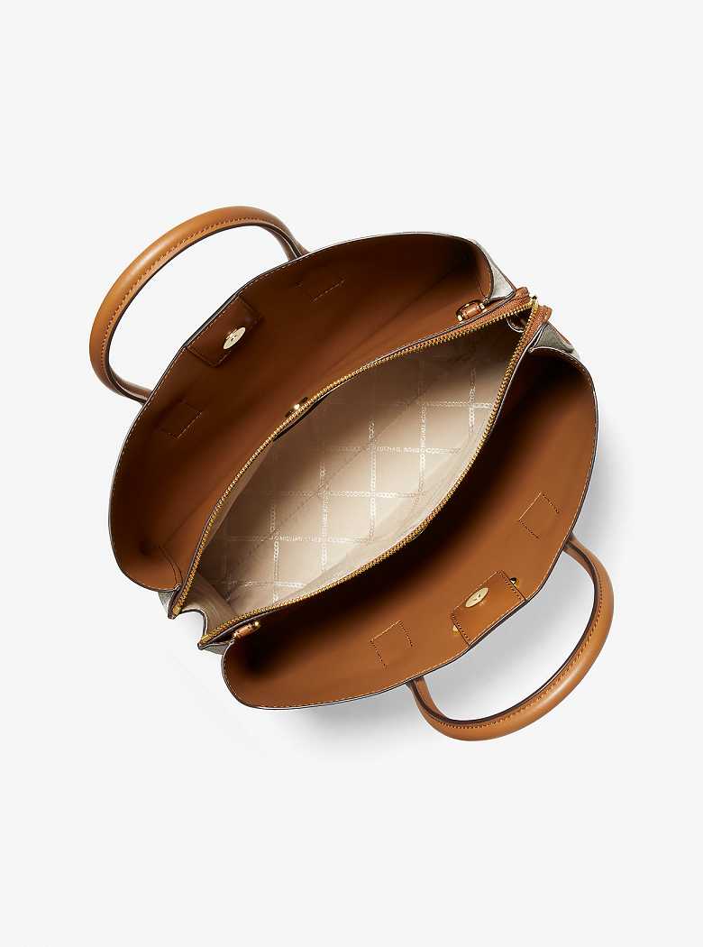 Designed to hold a day’s worth of essentials, our large Ruthie satchel features a mélange of polished and pragmatic elements in an effortlessly chic package. Crafted from our Signature Logo print with smooth trim, it’s designed in a structured silhouette that rests on gold-tone studs for sophisticated appeal. Carry it by the sleek top-handles, or wear it cross-body when you’re on the go.