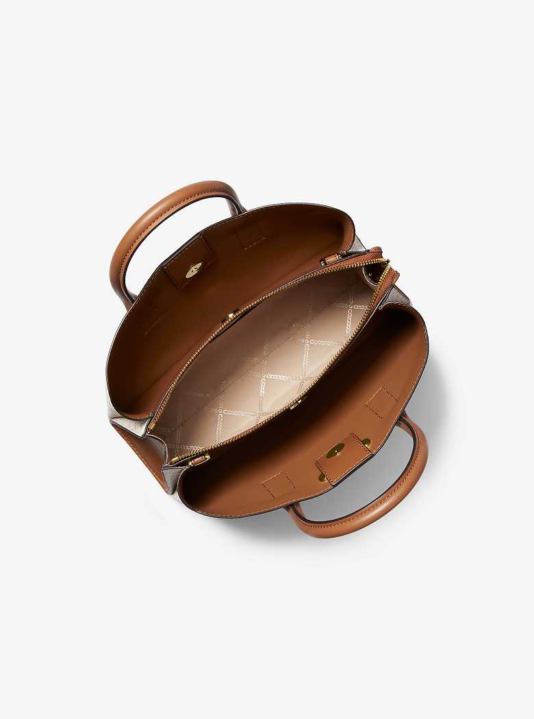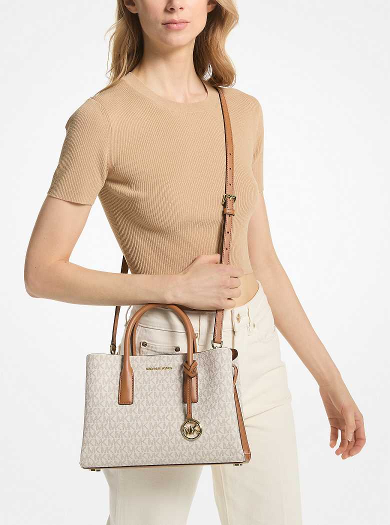 A shrunken-down version of the sleek essential, our small Ruthie satchel features a mélange of polished and pragmatic elements in an effortlessly chic package. Crafted from our Signature Logo print with smooth trim, it’s designed in a structured silhouette that rests on gold-tone studs for sophisticated appeal. Carry it by the sleek top-handles, or wear it cross-body when you’re on the go.