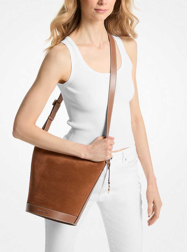 With its bucket-inspired shape and modern sensibility, the Townsend messenger bag is an ideal companion for on- and off-duty days. A suede exterior with top-stitched detailing guarantees lasting style wherever you go, and the leather strap can be adjusted for cross-body or over-the-shoulder wear.