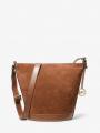 With its bucket-inspired shape and modern sensibility, the Townsend messenger bag is an ideal companion for on- and off-duty days. A suede exterior with top-stitched detailing guarantees lasting style wherever you go, and the leather strap can be adjusted for cross-body or over-the-shoulder wear.