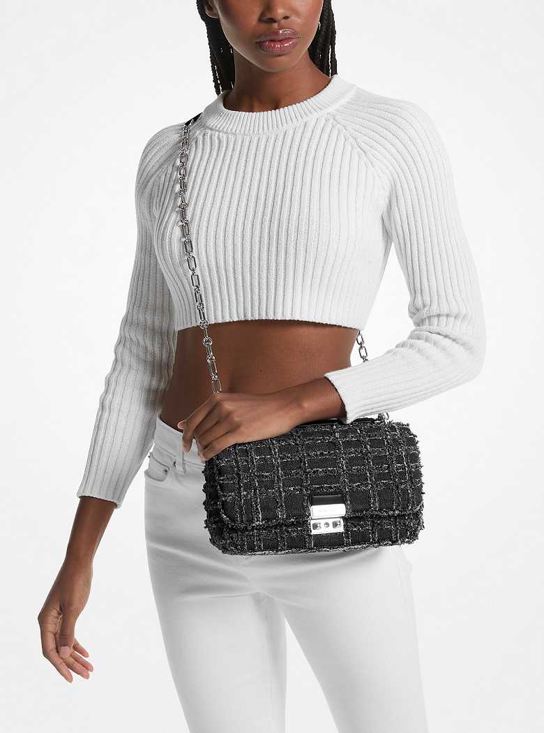 Michaelkors Tribeca Large Frayed Denim Pretas | SN-MK27006