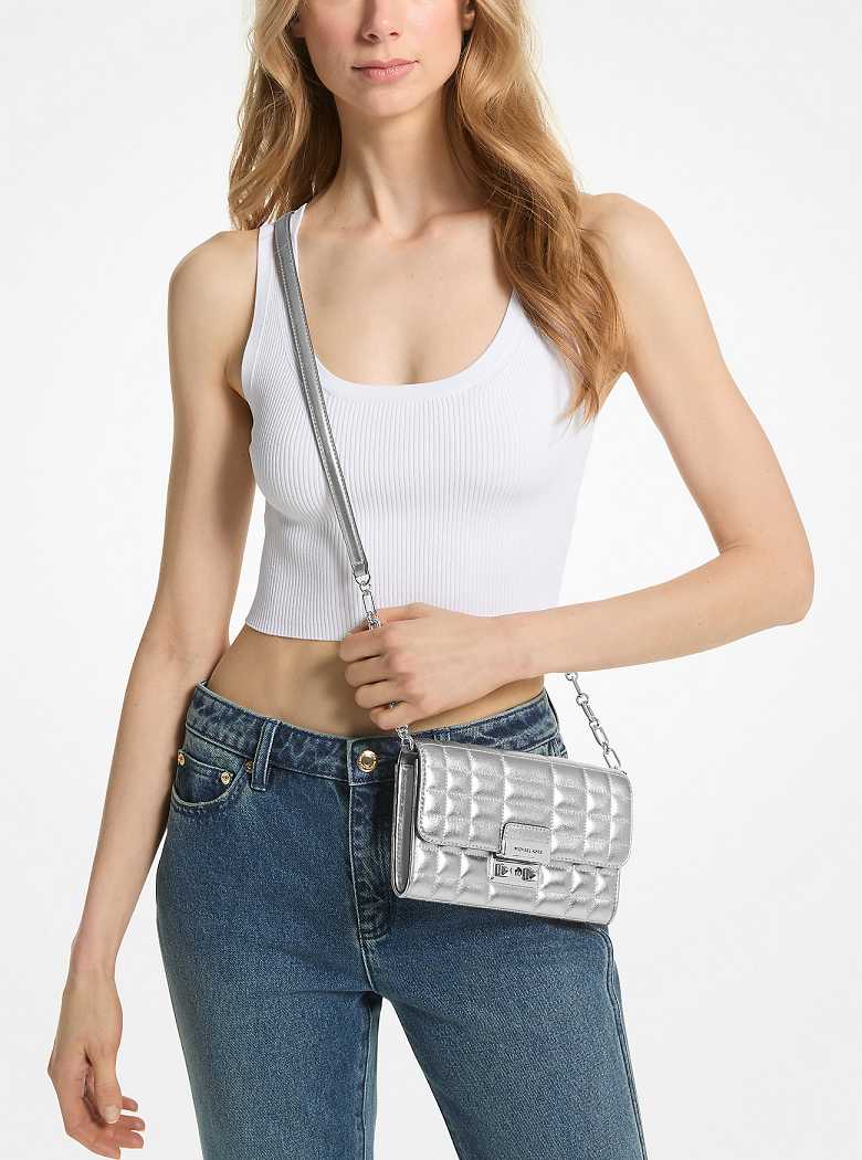 :: Michaelkors Tribeca Large Metallic Leather Convertible Prateadas | SN-MK27136