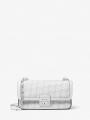 • Shoulder bag• Logo-print canvas• 90.3% coated canvas/9.7% polyester• Silver-tone hardware• 9”W X 5”H X 2.5”D• Adjustable strap: 11.5”- 20.5”• Interior details: 3 card slots• Lining: 100% polyester• Snap fastening• Dust bag not included• Imported