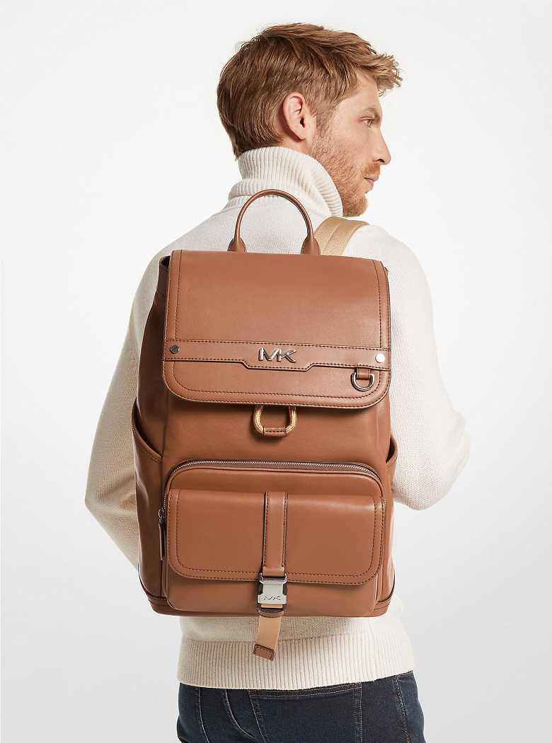 Designed to withstand daily use, our leather Varick backpack is detailed with an array of outside pockets and a trolley sleeve that makes traveling easy. A snap fastening reinforces the drawstring top to keeps all your essentials securely in place, and it has a padded back panel with adjustable straps for comfort. Inside, a dedicated slip pocket protects your tablet or laptop.